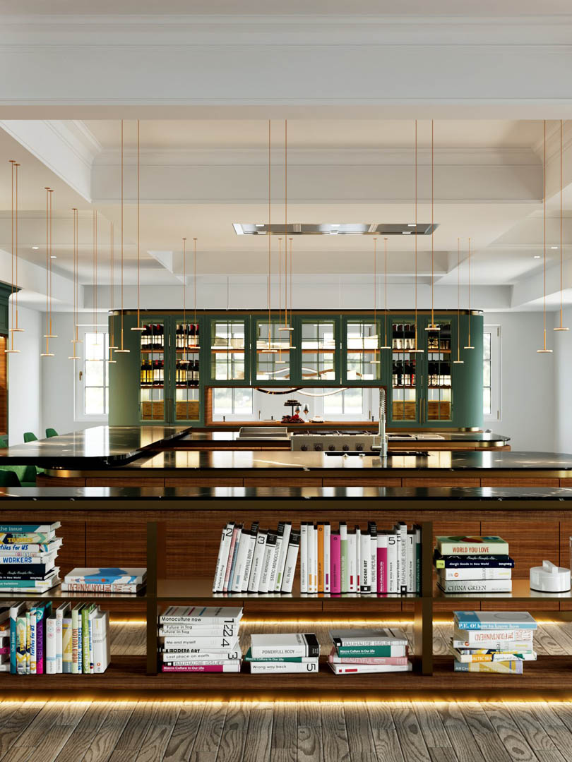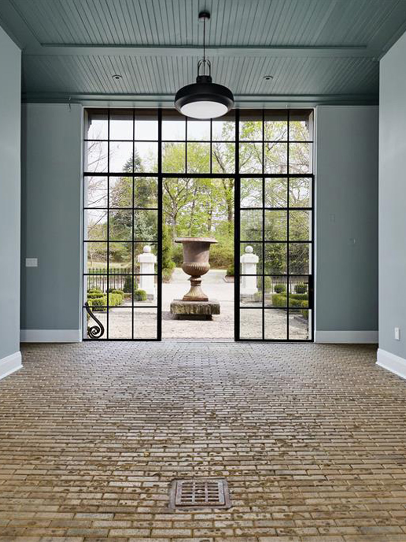 The concept of the historic English Tudor style carriage house, meticulously restored to a luxurious countryside estate, is centered around an enormous private courtyard. The finished home artfully blends the essence of the original carriage house and the historic character of Tuxedo Park.